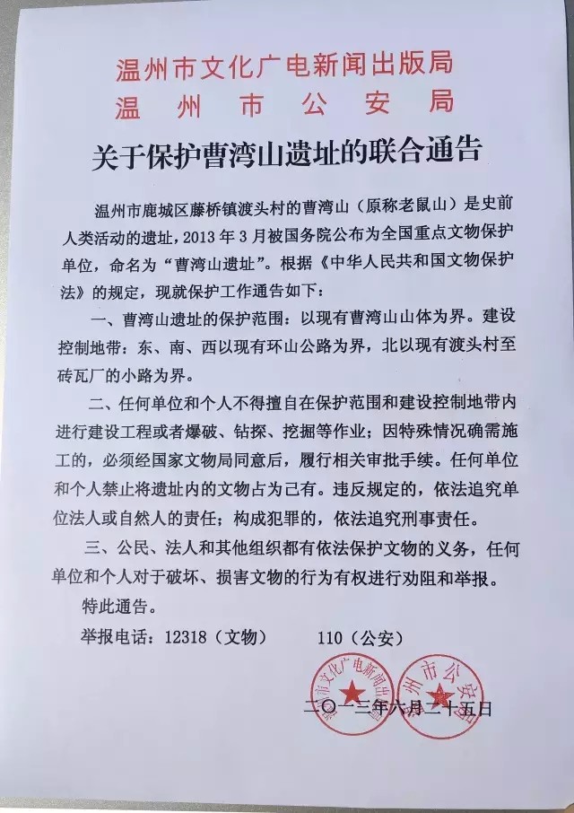为宣传文物法,增强文物保护意识,弘扬温州民俗文化,2016年3月25日由温州市鹿城区政府、温州市文物局主办,温州市鹿城区藤桥镇政府、温州市文物保护考古所等单位承办的文物法宣传非遗巡演在温州市鹿城区藤桥镇渡头村曹湾山举行。