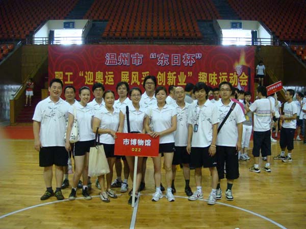 为进一步唱响“全民健身与奥运同行”这一主题,营造全市职工喜迎奥运,祝福北京的良好氛围,8月3日,市总工会在温州体育中心举办了“东日杯”职工趣味运动会。温州博物馆组队参加了这次运动会,并在运动会中取得了不错的成绩。