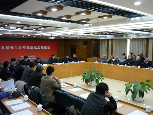 当天座谈会上来自北京文博系统的众多著名专家学在会上踊跃发言,缅怀夏鼐先生崇高的人格魅力和不凡的业绩。会上国家文物局原顾问谢辰生,中国考古学会理事长、故宫博物院原院长张忠培,严文明、李伯谦、刘庆柱、仇士华等领导专家先后发言。夏鼐先生的儿子夏正楷代表家属发言。温州博物馆馆长金柏东做为家乡代表应邀参加座谈会,并在会上回忆夏鼐先生生前对家乡文博的关心支持,并对夏鼐故居及纪念馆的筹备及设计施工的进展在会上做了介绍。