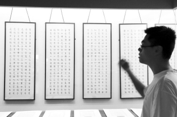 据介绍,此次展出的弘一大师160件墨宝包括平湖纪念馆运送来的120件、市博物馆收藏的40件。其中十六幅屏条《佛说阿弥陀佛经》,是展品中最为珍贵的。此屏条是弘一大师为其故去的父亲一百二十岁诞辰所做,具有史料和书法的双重珍贵价值。