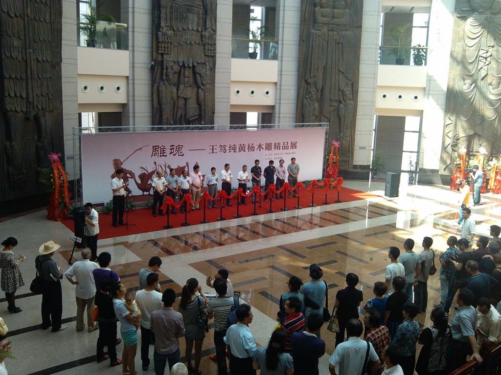 9月28日上午,雕魂——王笃纯黄杨木雕精品展在温州博物馆大厅隆重开幕。温州市文化广电新闻出版局局长吴东、温州市委宣传部副部长戴嘉宝、温州市文联主席吴琪捷等领导及王笃纯、高公博等数名国家级工艺美术大师等嘉宾应邀请出席开幕仪式。在开幕式上,吴东局长和王笃纯大师先后分别致辞,同时王笃纯大师还向温州博物馆无偿捐献了“母子情”、“假日”、“跳马”等十件木雕作品。本次展览得到了王笃纯大师的大力支持,共展出其不同年代的创作精品近九十件。