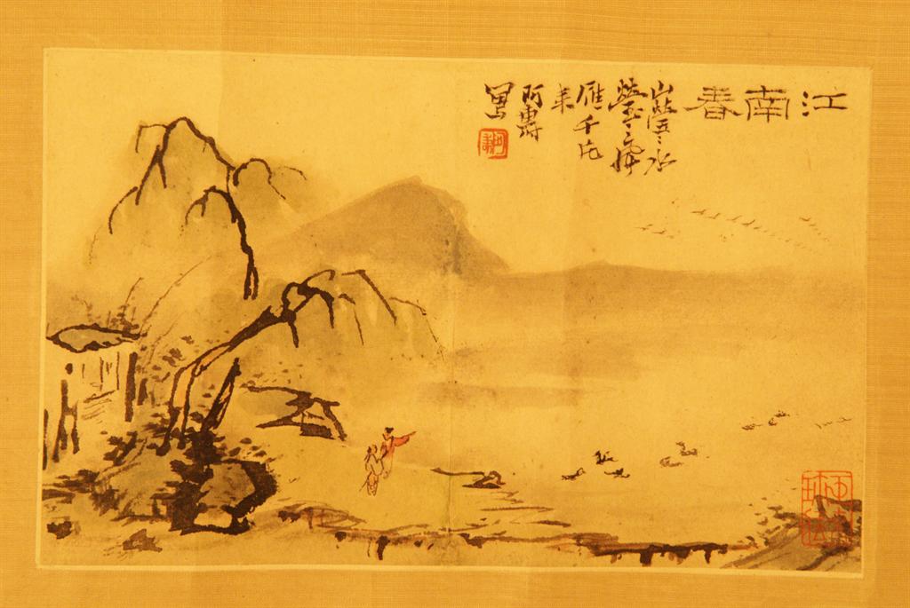 | 形态特征: | 设色,纸本。 内容:四季山水 款款(春)江南春、山莹莹、水莹莹、风雁千片来 阿寿写 印印:朱方'阿寿' 款款(夏)夏趣、懒尊者 印:朱方'阿寿' 款款(秋)秋眠、懒尊者 印:朱方'阿寿' 款款(冬)关山雪、寿者 印:朱方'阿寿' 注注:'阿寿'为同一方印 | ||