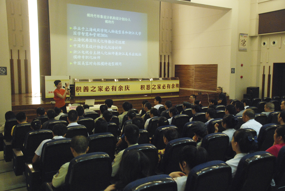 99日(星期一)下午230分,温州博物馆多功能教室举行讲座《博物馆形象礼仪》(傅玲丹主讲),全馆同仁以及物业管理部门共一百多人与会。傅女士就职场人士的着装礼仪、社交礼仪、日常仪态等方面结合博物馆工作性质与实际状况做了阐释与现场示范、互动,受到了听众的欢迎,现场气氛活泼热烈,深受教益。