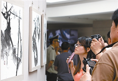 “与传统水墨画很不一样,这些作品既有中国传统水墨画的风雅,又融入了日本装饰美术,有异域风采。”喜爱书画艺术的市民涂先生,在市博物馆二楼展品前细细品赏。昨日上午,为期10天的“王俊宇潇水墨艺术温州展”举行开幕仪式,50多幅抽象山水、抽象花卉作品引人注目;《日记·境地》、《日记·季节》、《爱莲日记》、《日记·神话》系列作品带有浓厚的现代意识,给温州观众不一样的视觉冲击。