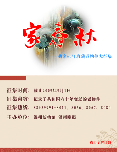 温州晚报与温州博物馆联合推出“家·春秋——我家60年珍藏老物件大征集”活动
